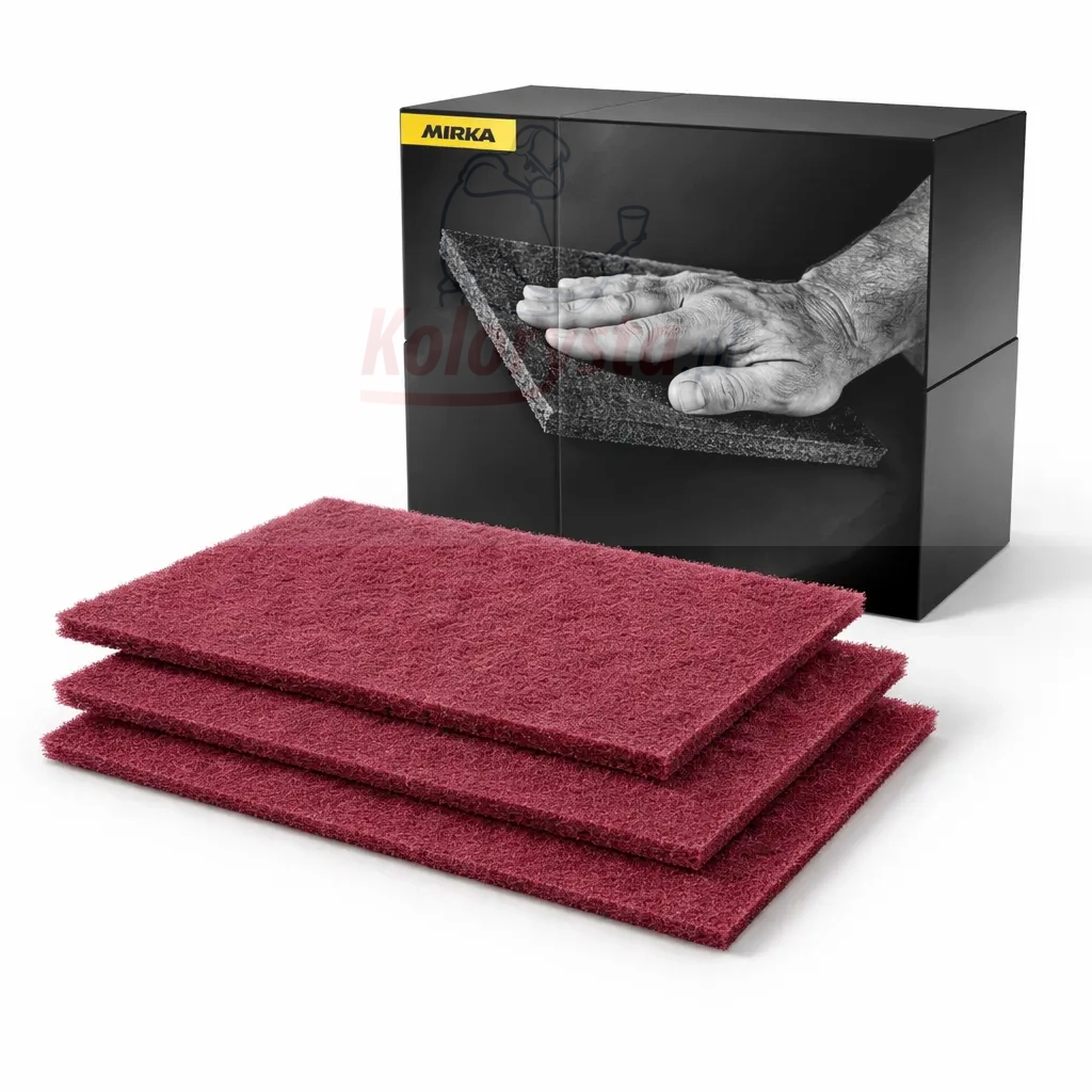Włóknina Mirlon pracuje równomiernie, jest elastyczna i wygodna w użyciu ręcznym, dlatego dobrze sprawdza się tam, gdzie klasyczny papier ścierny jest zbyt sztywny lub mniej wygodny.
