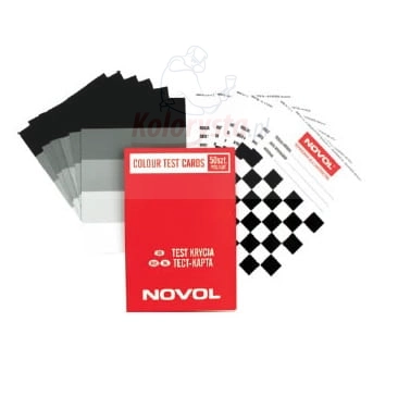 Z drugiej karta pokryta jest paskami w odcieniach szarości (biały, jasnoszary, szary, ciemnoszary, czarny), co umożliwia, szczególnie przy kolorach transparentnych, ocenę wpływu koloru podłoża na końcowy efekt kolorystyczny.